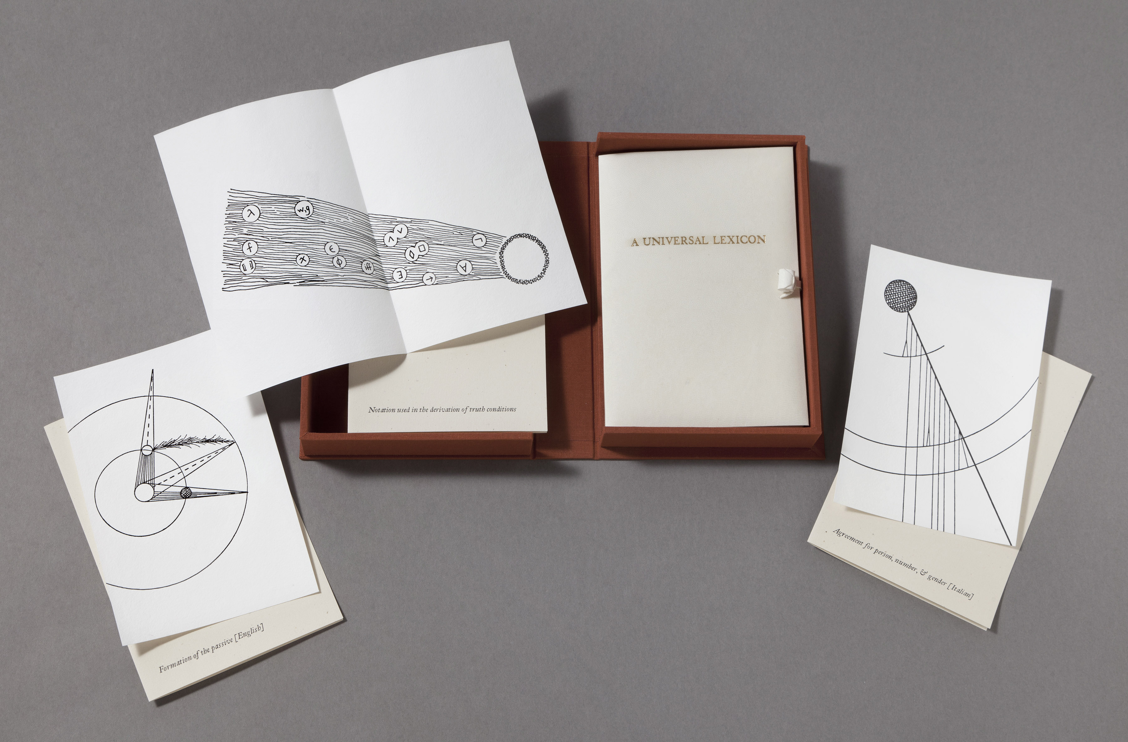 This deluxe edition is bound in vellum and housed in a clamshell box. It is accompanied by three additional prints illustrating aspects of the linguistic structure of the two languages.
