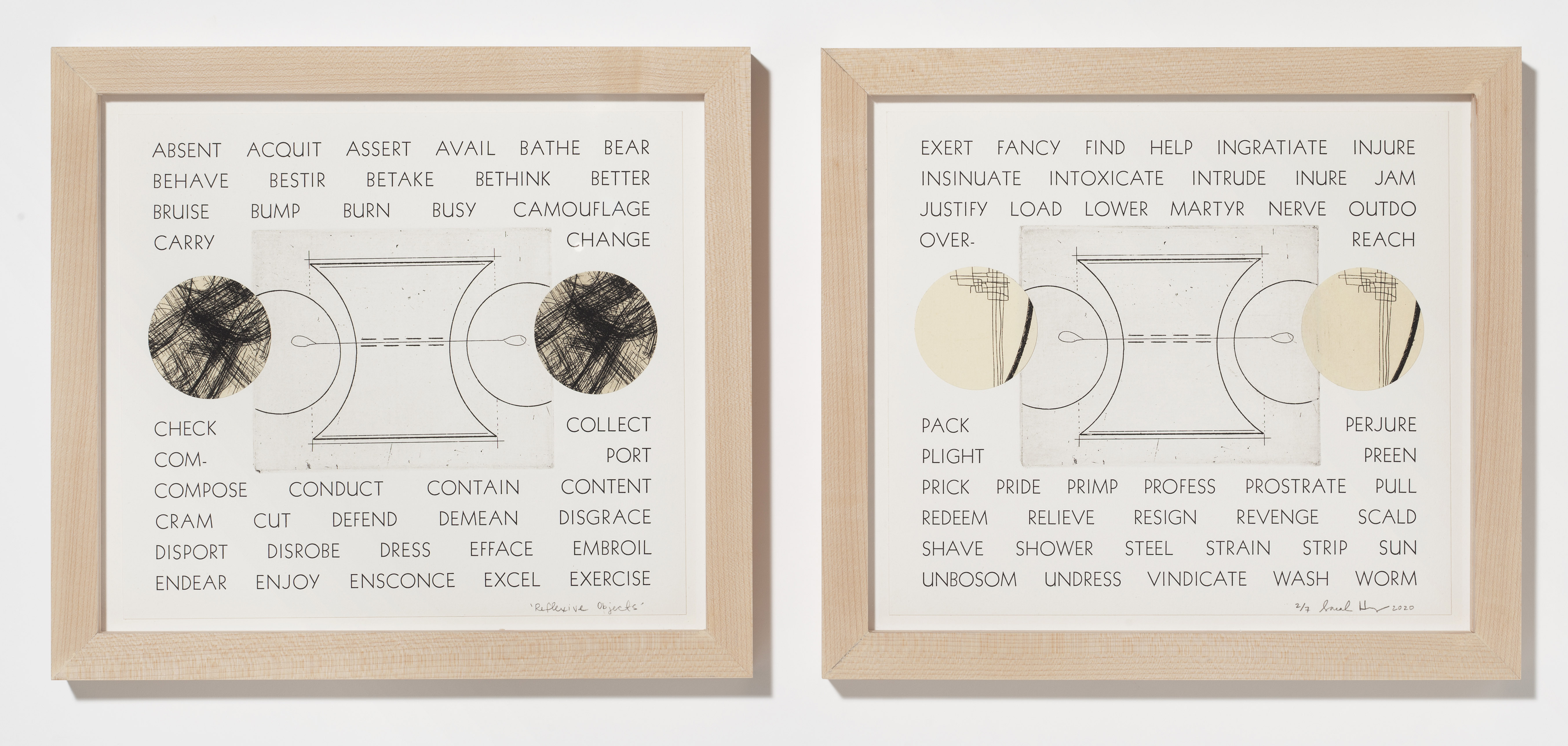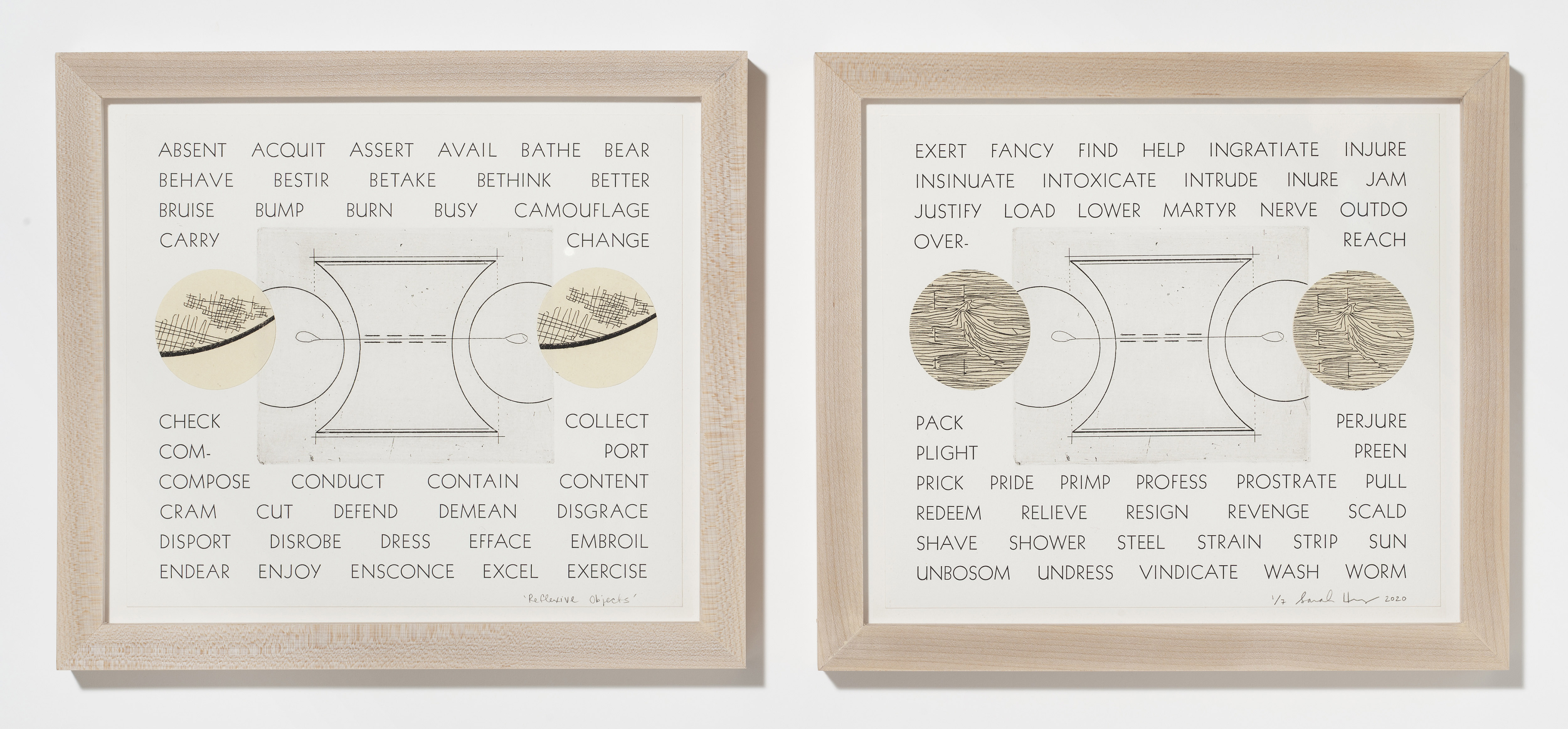 Reflexive Objects | etching, letterpress | 10.25ʺ x 23.75ʺ (framed) | edition of 7 | 2020