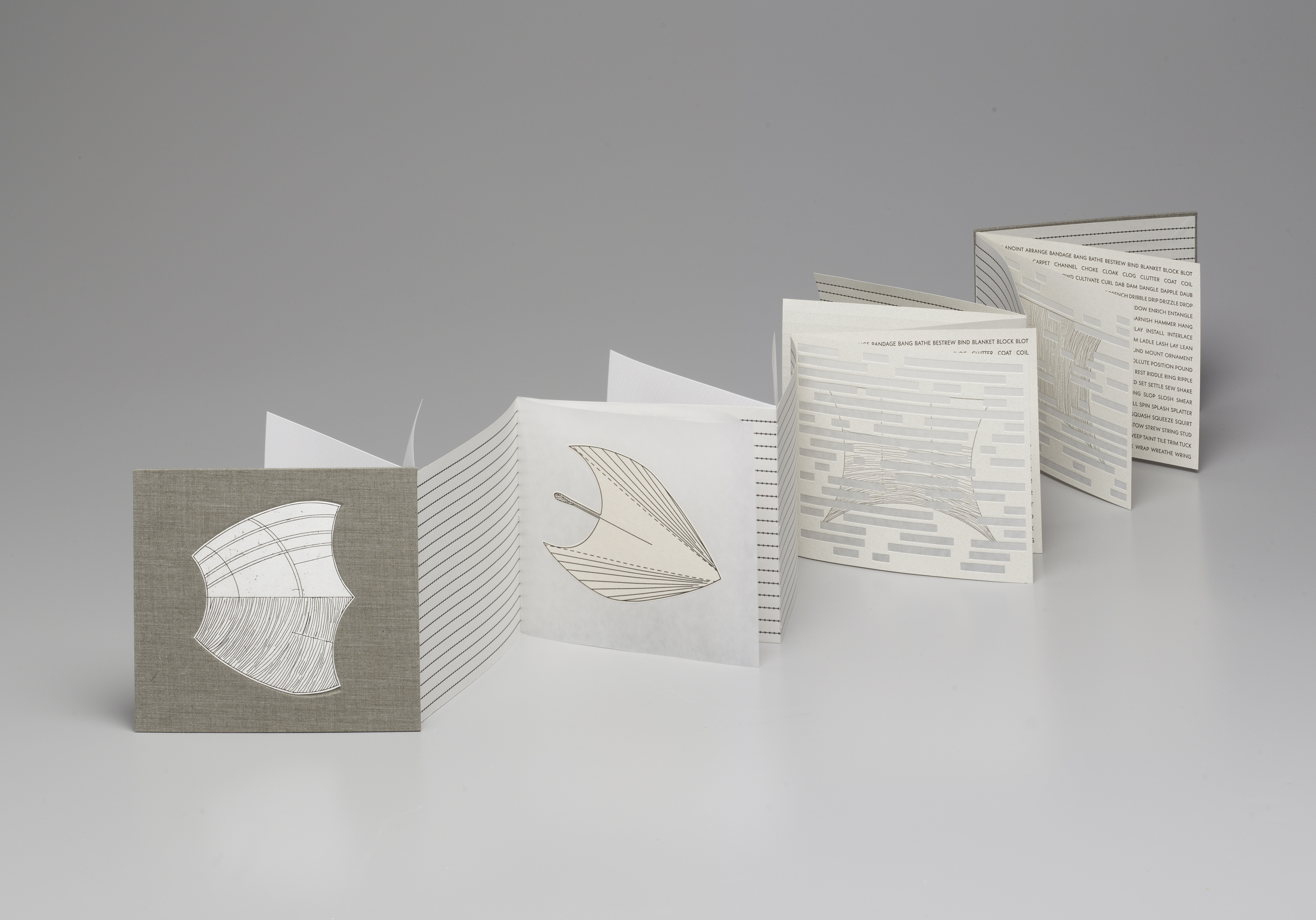 letterpress from polymer plates, die cutting, etching | 5ʺ x 6ʺ x ⅜ (closed), 5ʺ x 48ʺ (open) | edition of 35 | 2022