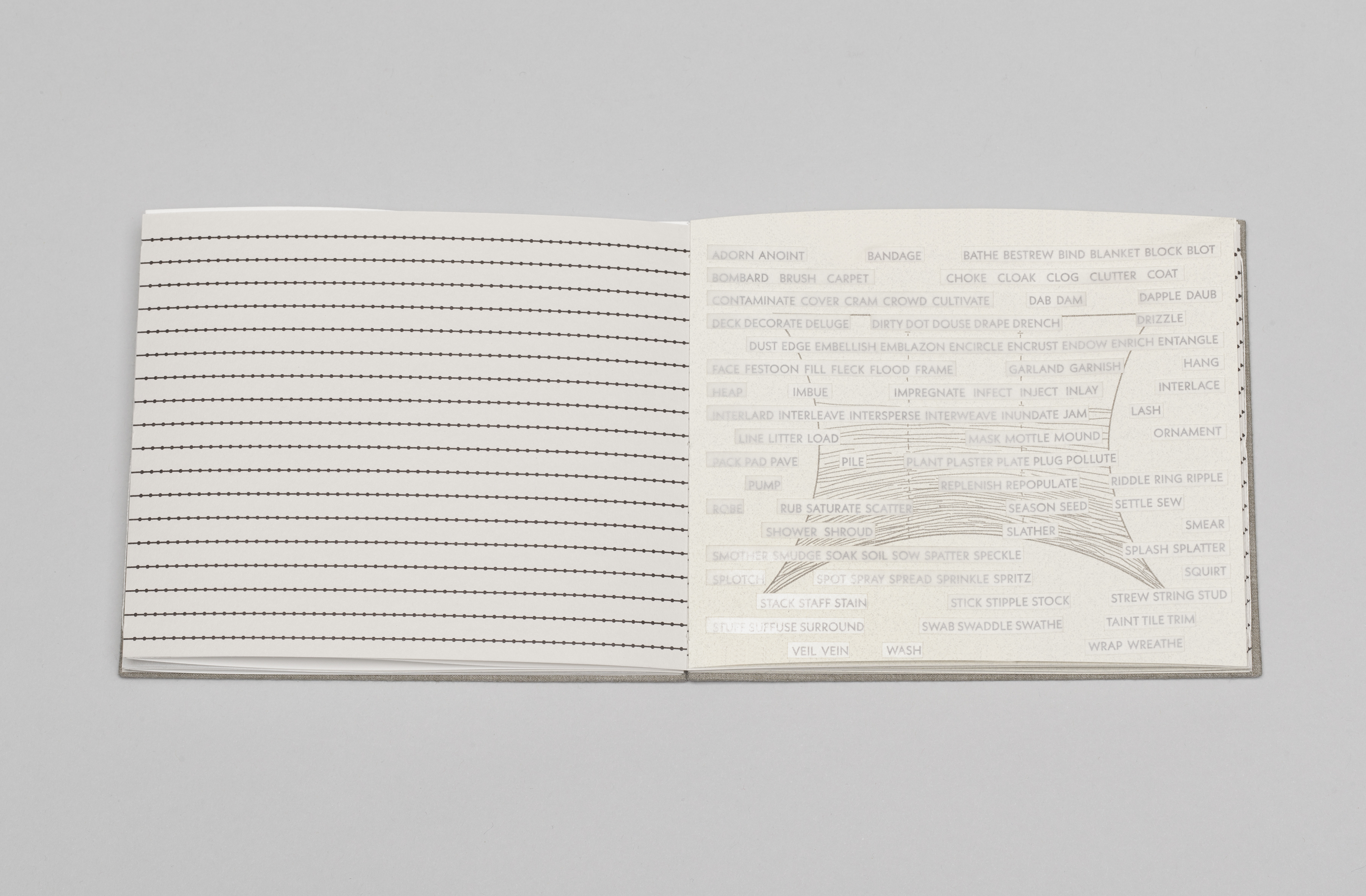 This book employs schematic shapes to represent unconsciously known rules of language. Printed background patterns hint at the large body of lexical knowledge that every speaker has, while die cut and printed shapes suggest patterns within all languages.